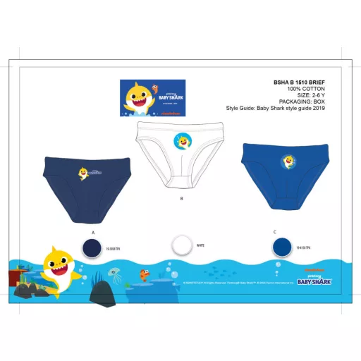 Baby Shark kisfiú alsó - 3 darabos pamut alsó