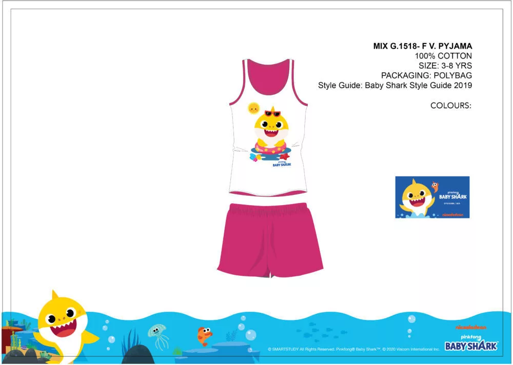 Baby Shark nyári ujjatlan gyerek pizsama - pamut pizsama - pink