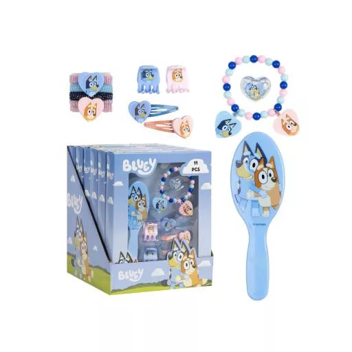 Bluey 4 részes szépségápolási készlet (hajgumi+hajcsat+karkötő+hajkefe)
