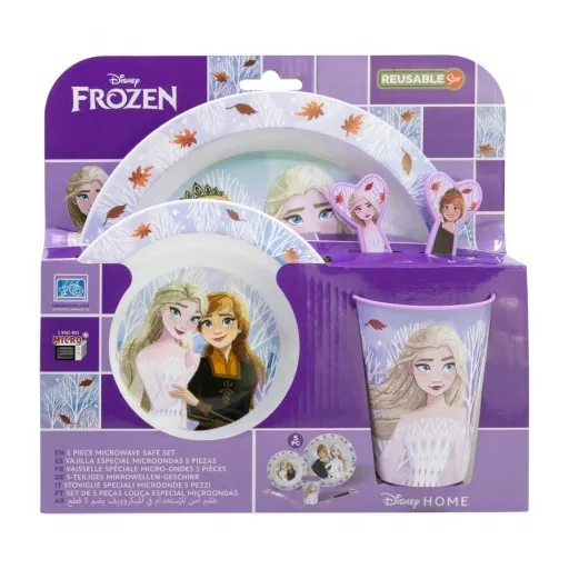 Jégvarázs (Frozen) 5 részes mikrózható étkészlet (lapos tányér|mély tányér|villa|kanál|pohár)