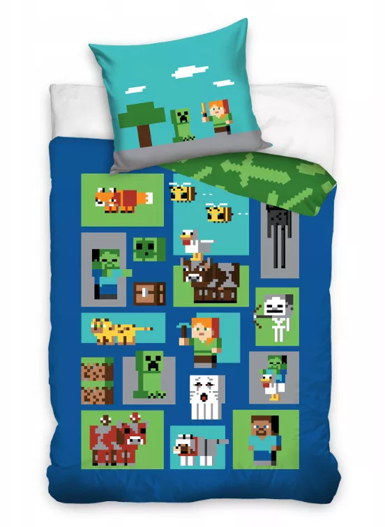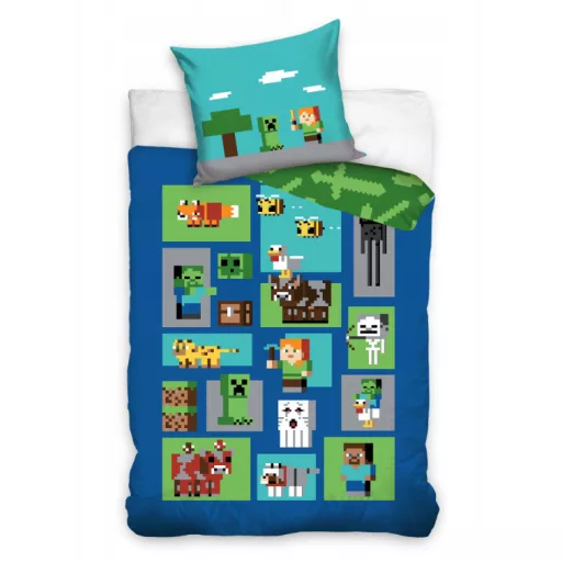 Minecraft 100% pamut ágyneműgarnitúra 160x200cm ágyneműhuzat + 70x80cm párnahuzat