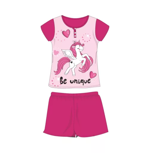 Nyári rövid ujjú gyerek pamut pizsama - Unikornis - pink - 134