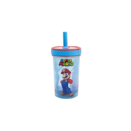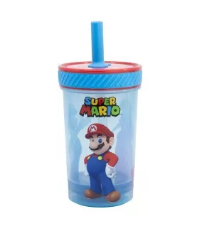 Super Mario felboríthatatlan csúszásgátlós műanyag pohár szívószállal - 370ML