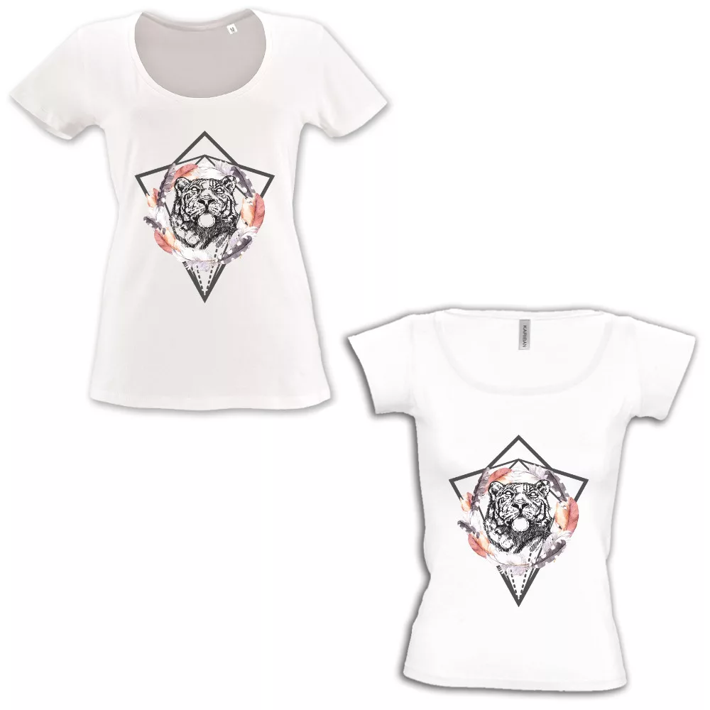 Boho tigris - Mély kivágású & Csónaknyakú Női Póló