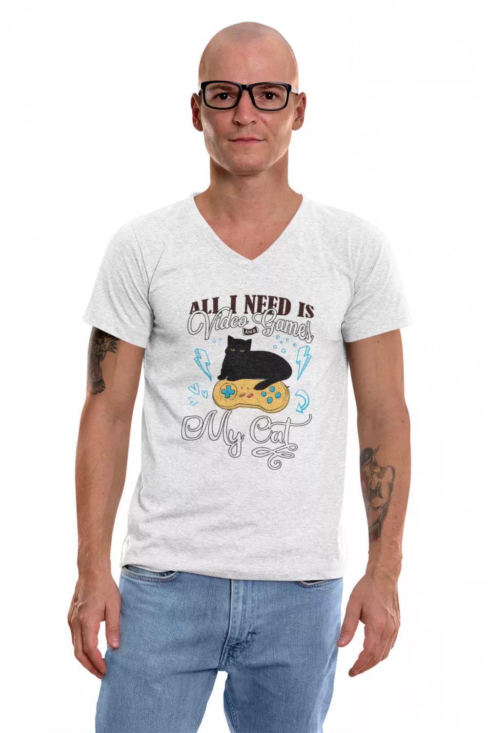 All I need is Video Games and my Cat - Férfi V Nyakú Póló