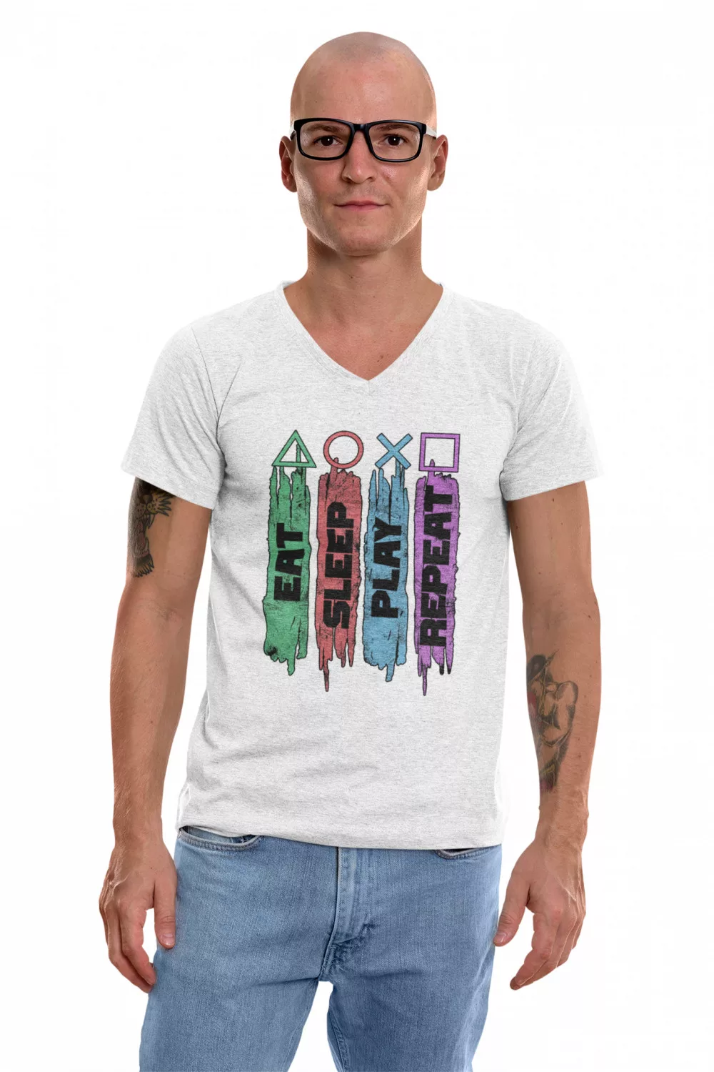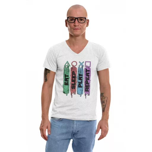 Eat Sleep Play Repeat - Férfi V Nyakú Póló