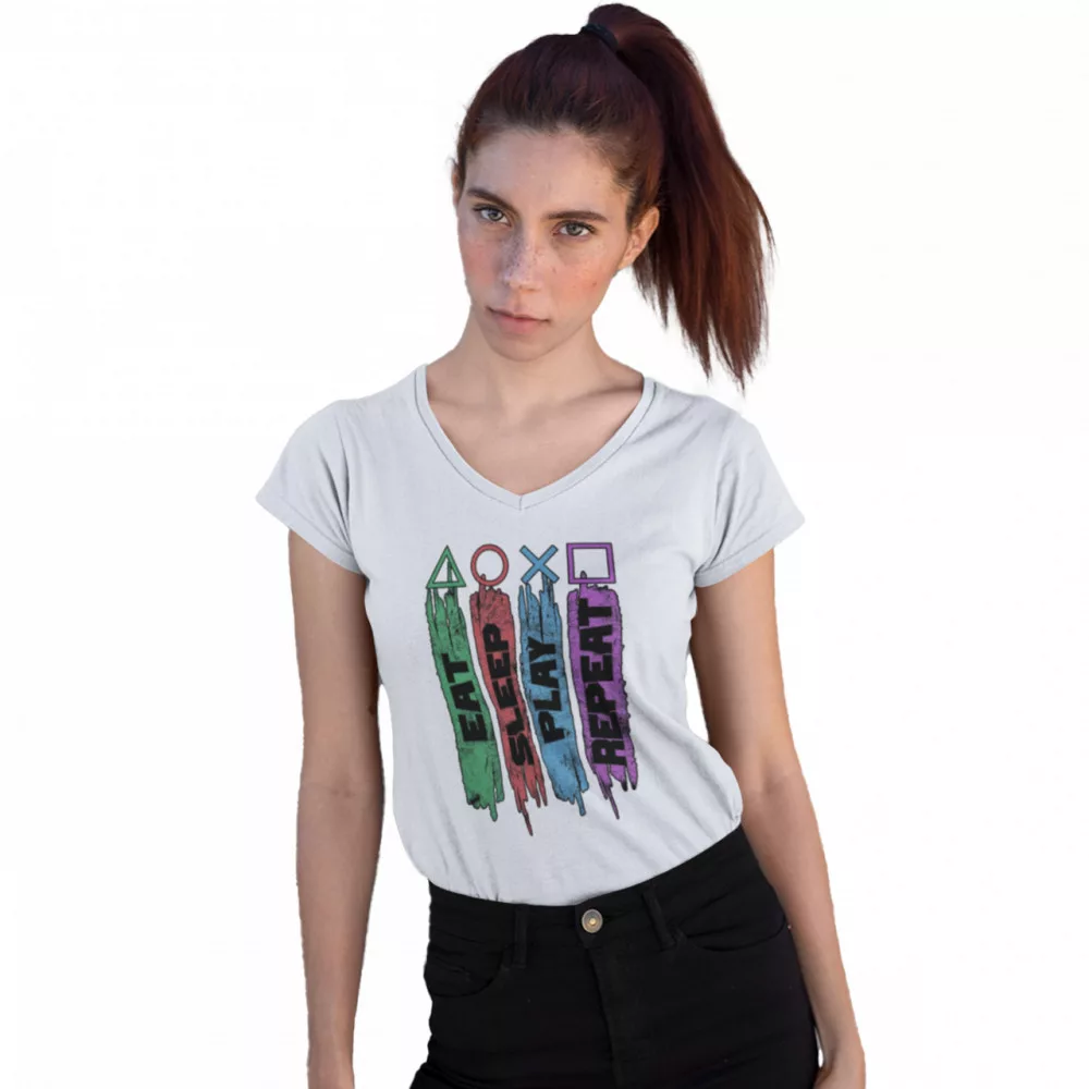 Eat Sleep Play Repeat - Női V-Nyakú Póló