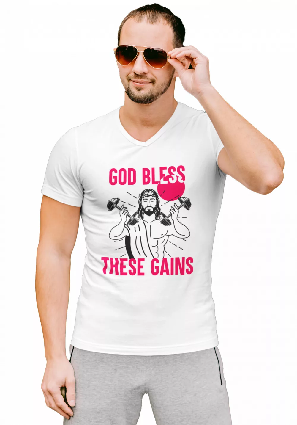 God Bless These Gains - Férfi V Nyakú Póló