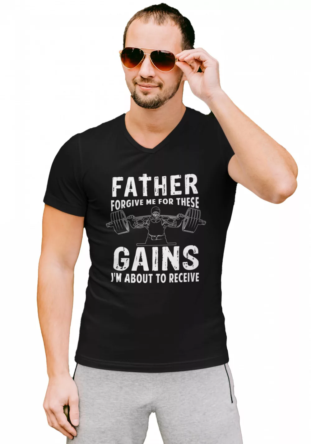 Father forgive me for these gains - Férfi V Nyakú Póló
