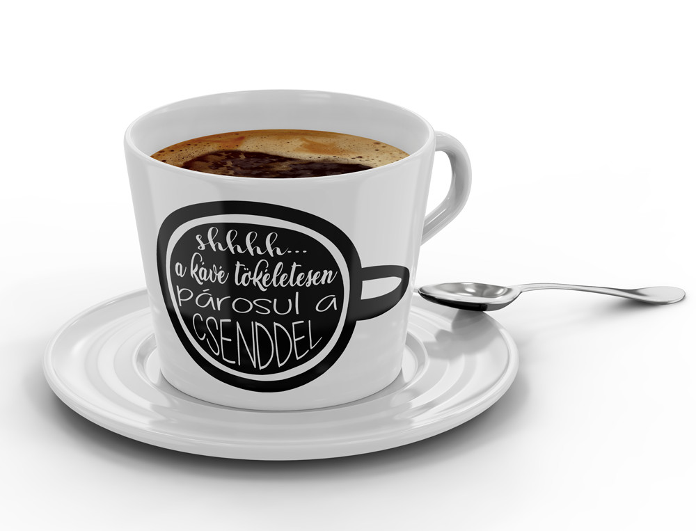 A kávé tökéletesen párosul a csenddel - Kávéscsésze (Ajándék kistányérral)
