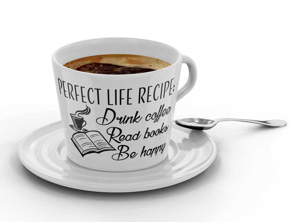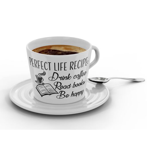 Drink coffe, Read Books, Be Happy - Kávéscsésze (Ajándék kistányérral)