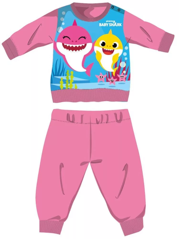 Baby Shark téli vastag baba pizsama - pamut flanel pizsama - rózsaszín - 98