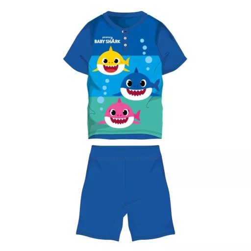 Baby Shark nyári rövid ujjú gyerek pizsama - pamut jersey pizsama - középkék-kék - 116