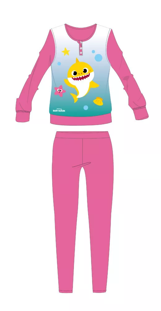 Baby Shark gyerek pizsama kislányoknak - jersey pamut pizsama - rózsaszín - 110