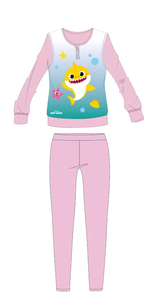 Baby Shark gyerek pizsama kislányoknak - jersey pamut pizsama - világosrózsaszín - 110