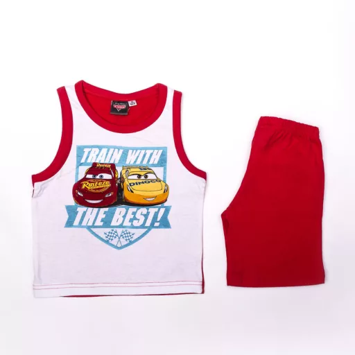 Verdák kisfiú pamut nyári együttes - trikó-rövidnadrág szett -piros - 110