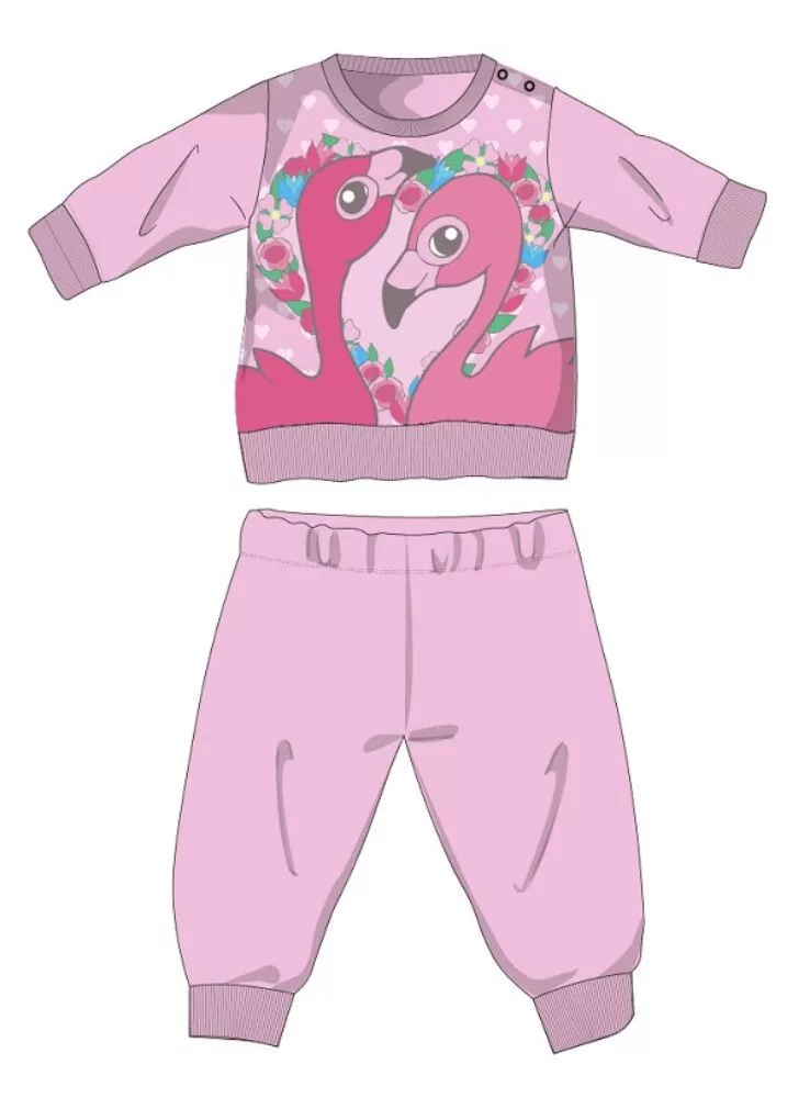 Flamingó téli pamut baba pizsama - interlock pizsama - világosrózsaszín - 80
