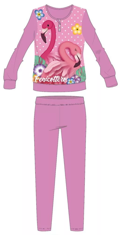 Flamingó téli vastag gyerek pizsama - pamut flanel pizsama - mályva - 98