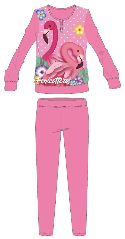 Flamingó téli vastag gyerek pizsama - pamut flanel pizsama - rózsaszín - 98