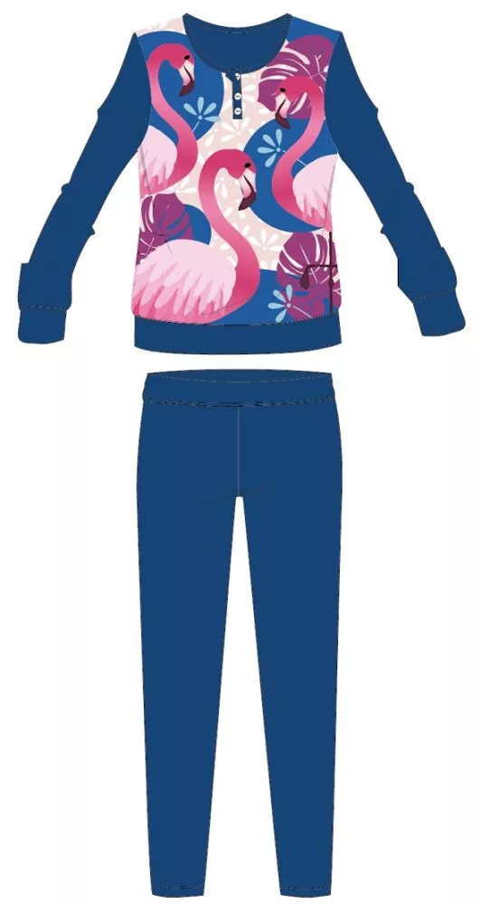 Flamingó téli pamut gyerek pizsama - interlock pizsama - levél mintával - sötétkék - 104