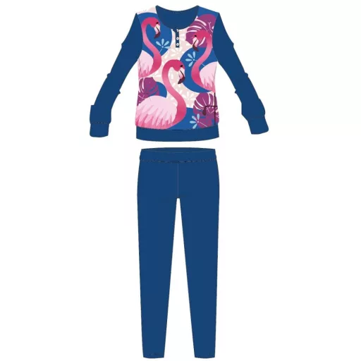 Flamingó téli pamut gyerek pizsama - interlock pizsama - levél mintával - sötétkék - 110
