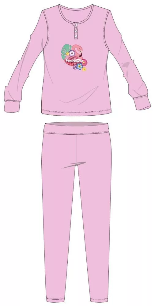Flamingó téli pamut gyerek pizsama - interlock pizsama - világosrózsaszín - 128