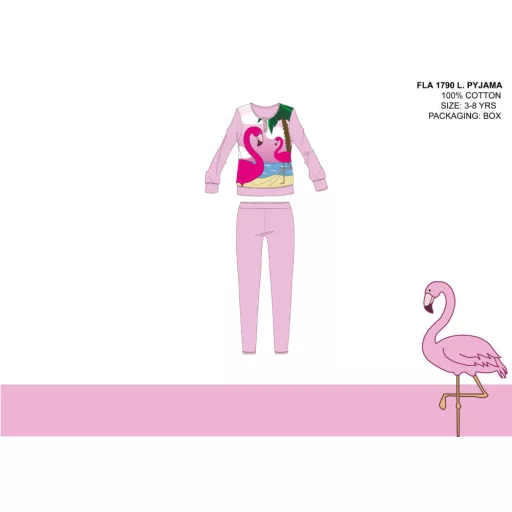 Flamingó vékony pamut gyerek pizsama - jersey pizsama - világosrózsaszín - 104