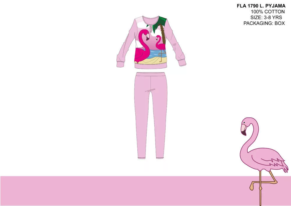 Flamingó vékony pamut gyerek pizsama - jersey pizsama - világosrózsaszín - 128