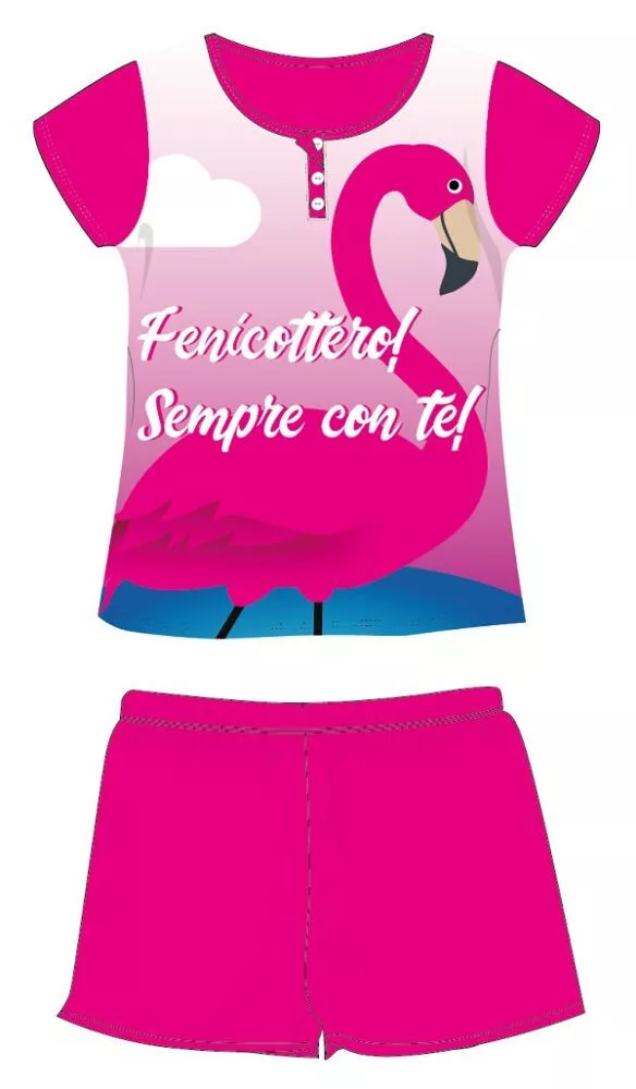 Flamingó nyári rövid ujjú gyerek pizsama - pamut jersey pizsama - pink - 104