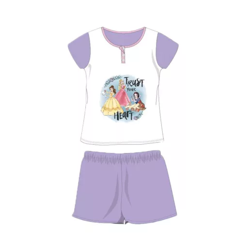 Nyári rövid ujjú gyerek pamut pizsama - Disney Hercegnők - Trust your heart felirattal - világoslila - 104