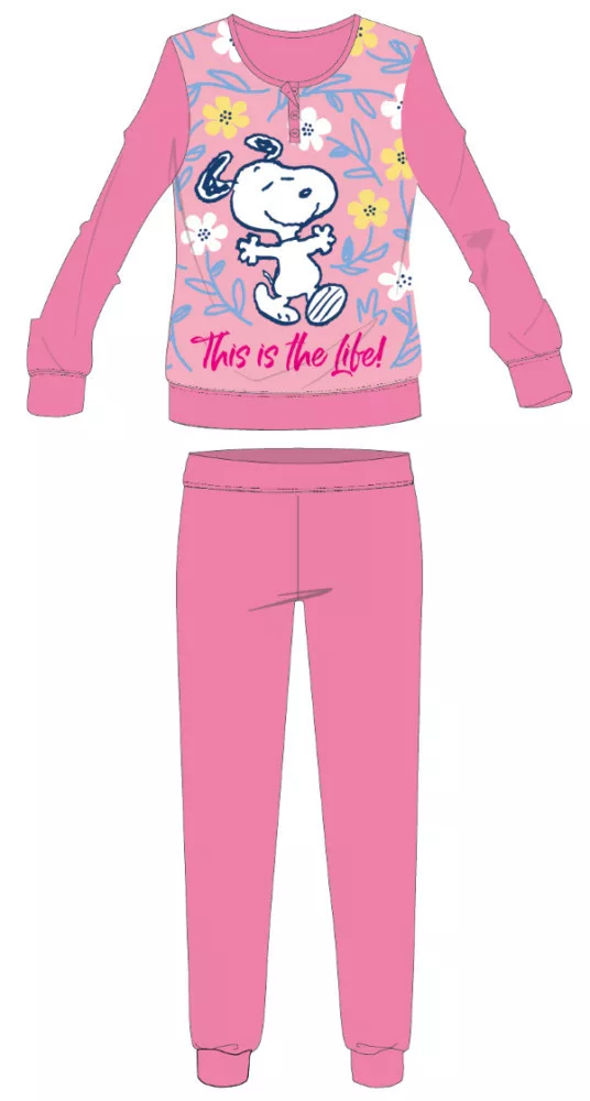 Snoopy hosszú vékony pamut gyerek pizsama -  jersey pizsama - rózsaszín - 104