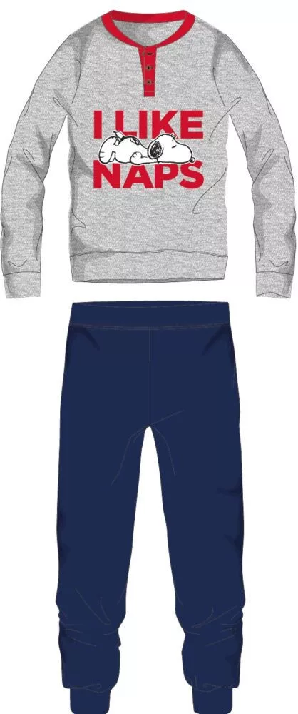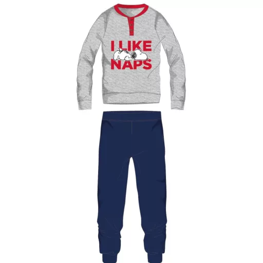 Snoopy férfi vékony pamut pizsama - jersey pizsama - világosszürke-sötétkék - M