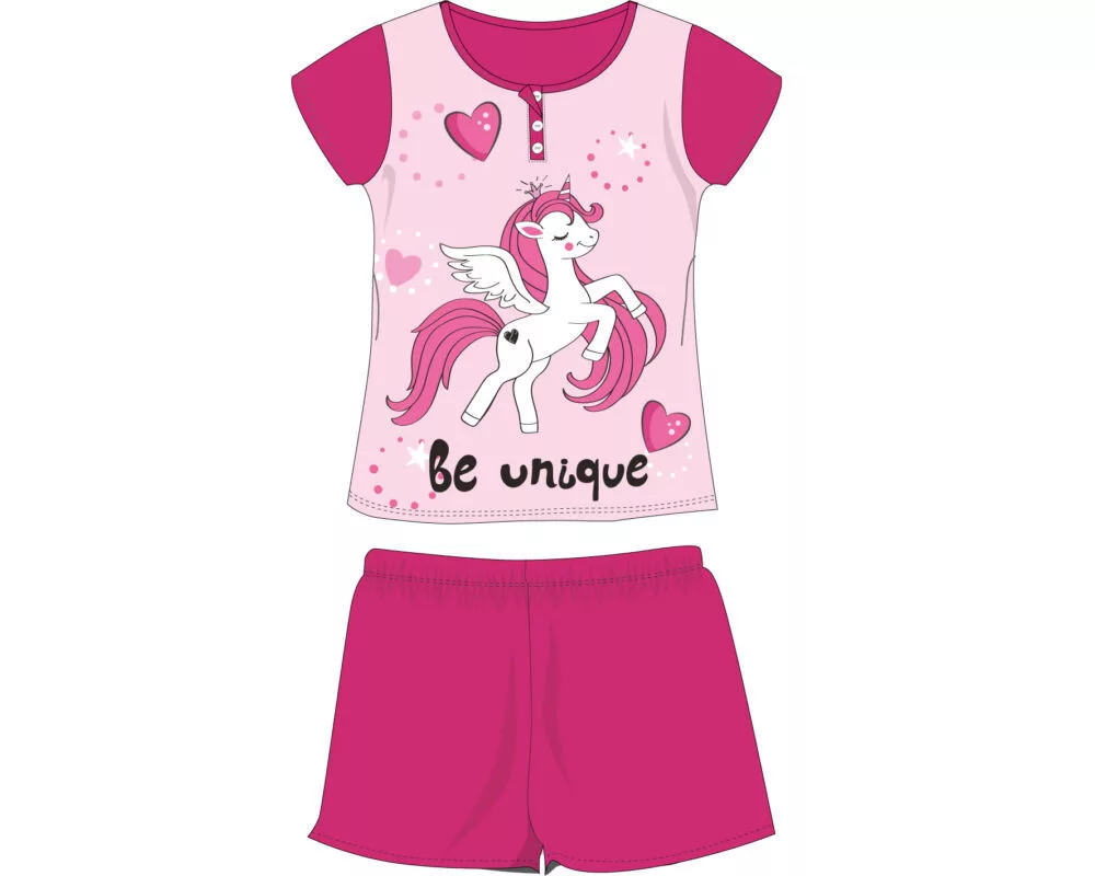 Nyári rövid ujjú gyerek pamut pizsama - Unikornis - pink - 116