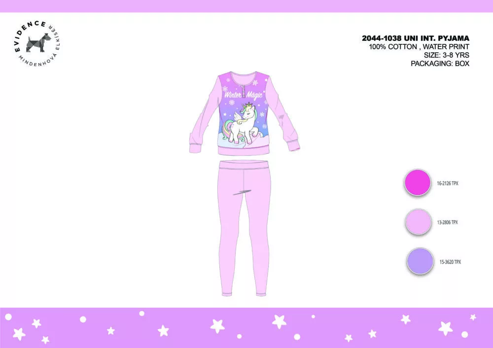 Téli pamut interlock gyerek pizsama - Unikornis - világosrózsaszín - 134