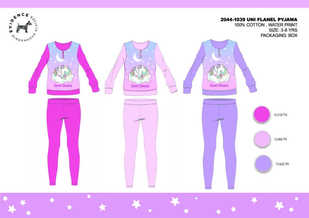 Téli vastag pamut gyerek pizsama - flanel pizsama - Unikornis - lila - 98