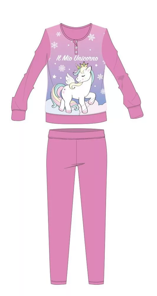 Unikornis téli vastag gyerek pizsama - pamut flanel pizsama - mályva - 116