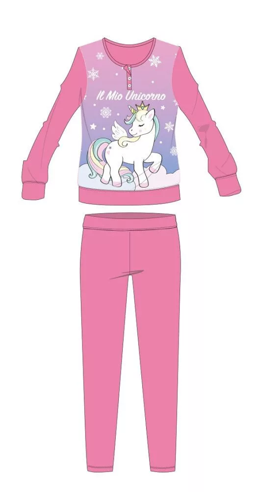 Unikornis téli vastag gyerek pizsama - pamut flanel pizsama - rózsaszín - 98
