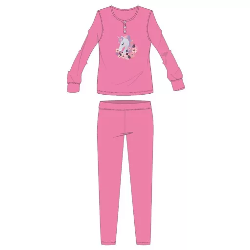 Unikornis pamut flanel pizsama - téli vastag gyerek pizsama - rózsaszín - 110
