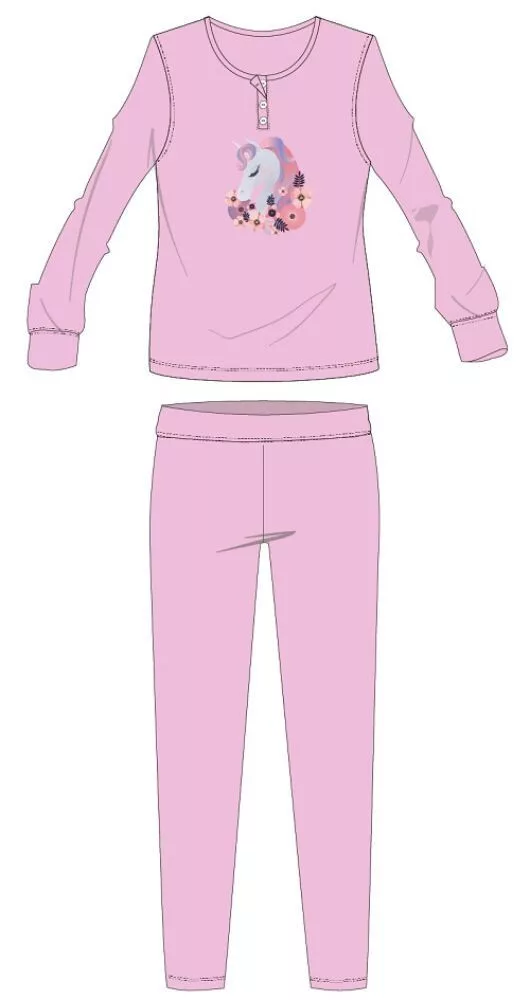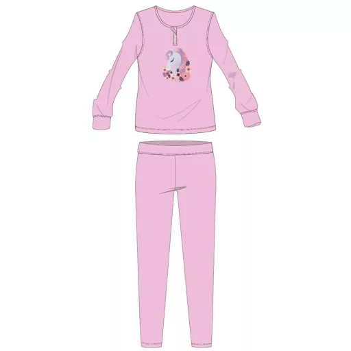 Unikornis pamut flanel pizsama - téli vastag gyerek pizsama - világosrózsaszín - 110