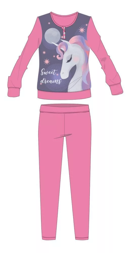 Unikornis téli pamut gyerek pizsama - interlock pizsama - Sweet Dreams felirattal - rózsaszín - 98