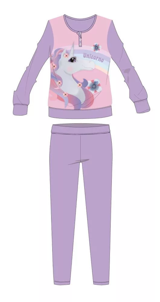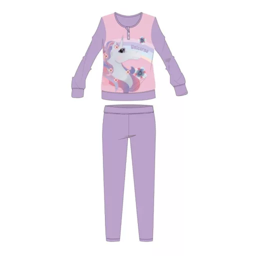 Unikornis téli pamut gyerek pizsama - interlock pizsama - Unicorno felirattal - világoslila - 110