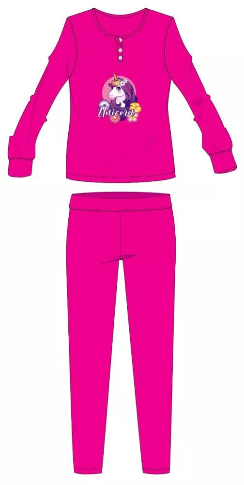 Unikornis téli pamut gyerek pizsama - interlock pizsama - pink - 128