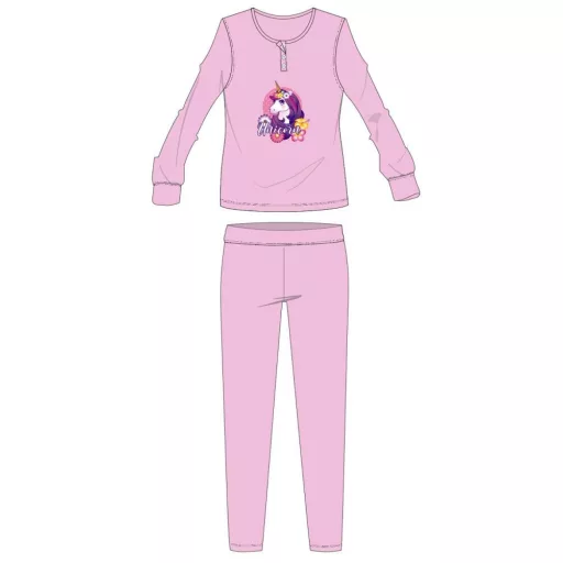 Unikornis téli pamut gyerek pizsama - interlock pizsama - világosrózsaszín - 122