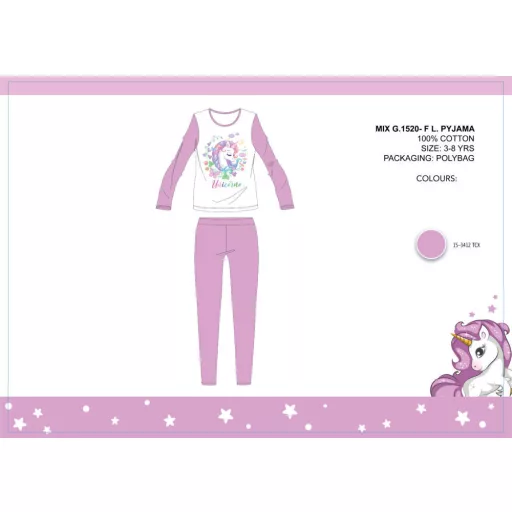 Unikornis gyerek jersey pizsama - pamut pizsama - világoslila - 128
