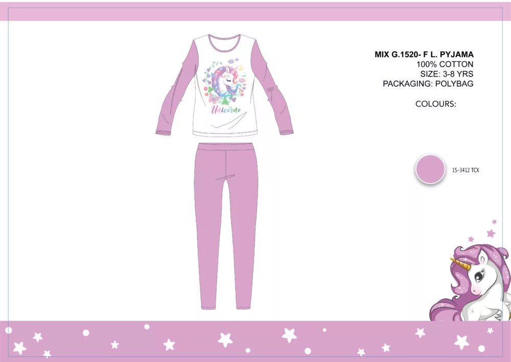 Unikornis gyerek jersey pizsama - pamut pizsama - világoslila - 98