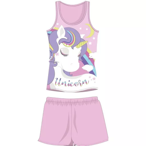 Unikornis ujjatlan nyári gyerek pizsama - pamut pizsama - világosrózsaszín - 98