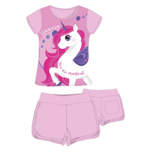 Unikornis pamut nyári együttes - póló-rövidnadrág szett - világosrózsaszín - 98