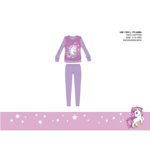 Unikornis vékony pamut gyerek pizsama - jersey pizsama - lila - 116