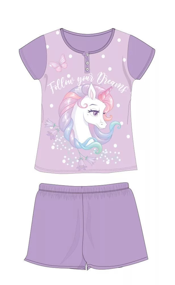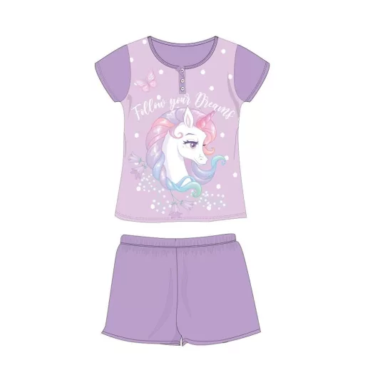 Unikornis nyári rövid ujjú gyerek pizsama - pamut jersey pizsama - lila - 116
