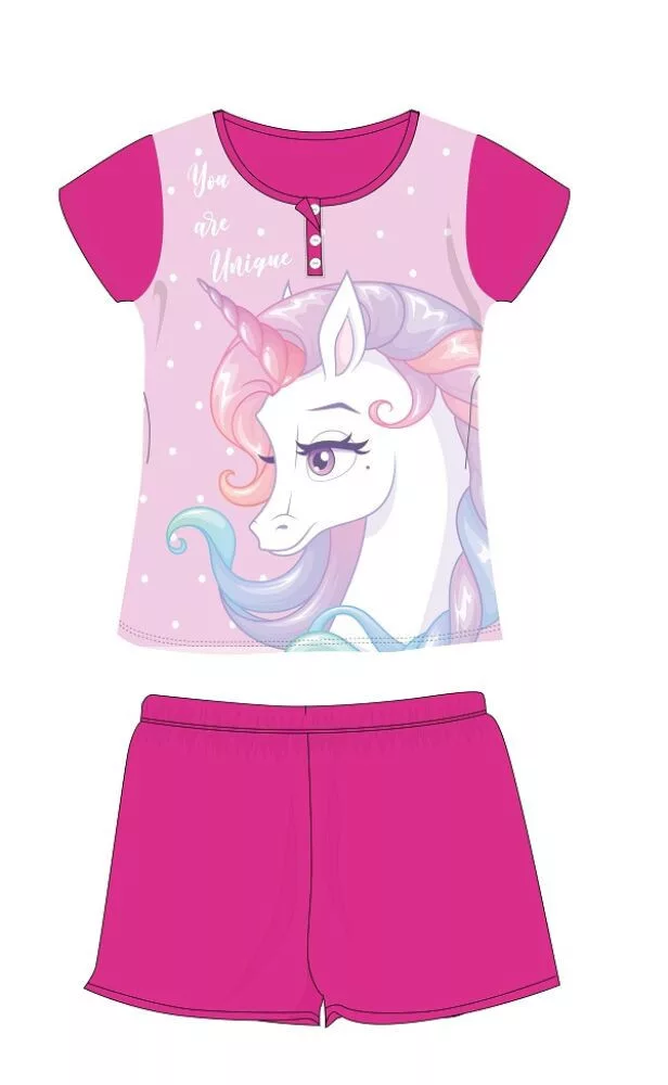 Unikornis nyári rövid ujjú gyerek pizsama - pamut jersey pizsama - pink - 110